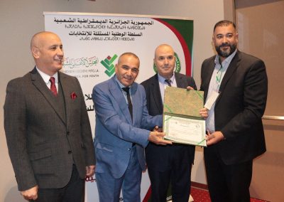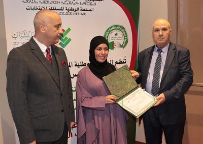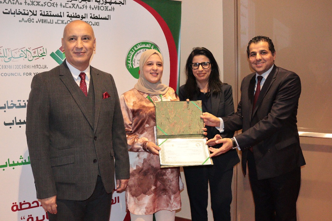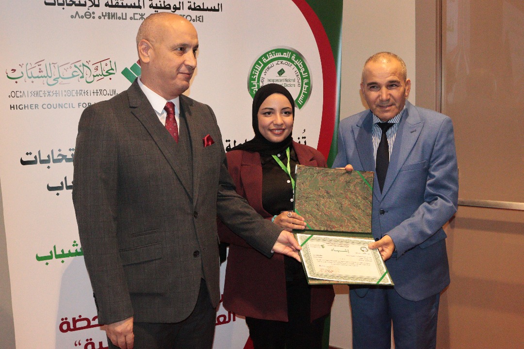 تضمّن الحفل توزيع شهادات المشاركة على المستفيدين من التكوين، وشهادات شكر وتقدير على المؤطرين، عرفانًا بمساهمتهم الفعالة وجهودهم المتميزة في إنجاح هذه الدورة، التي تهدف إلى تعزيز قدرات الشباب في مجالات المشاركة الديمقراطية وملاحظة العمليات الانتخابية، وترقية قيم النزاهة والشفافية في الممارسات الانتخابية.