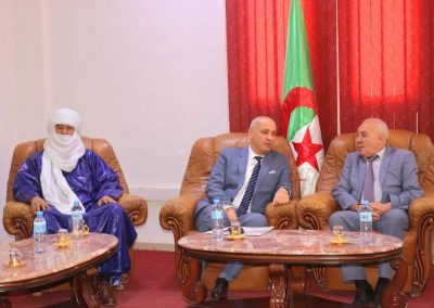 وقد كان في استقباله لدى وصوله إلى مقر الولاية السيد والي الولاية، مرفوقًا بـ رئيس المجلس الشعبي الولائي وإطارات وممثلي السلطات المحلية المدنية القضائية والأمنية.