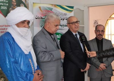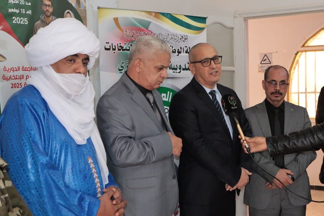 في إطار المتابعة الميدانية لعملية المراجعة الدورية للقوائم الانتخابية لسنة 2025 في مرحلتها المتعلقة بالاعتراضات الادارية والطعون القضائية، قام البروفيسور كريم خلفان، رئيس السلطة الوطنية المستقلة للانتخابات بالنيابة، بزيارة عمل رسمية إلى ولاية إليزي، يوم الاثنين الفاتح من شهر ديسمبر 2025، مرفوقاً بالسادة عضوي مجلس السلطة المستقلة: العارية بولرباح و رحموني عبدالرحمان.
